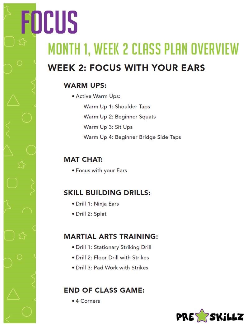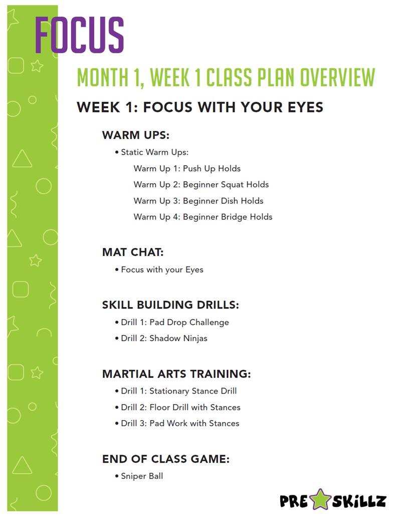 Here is a class plan we used for the first and second week of the PreSKILLZ program.